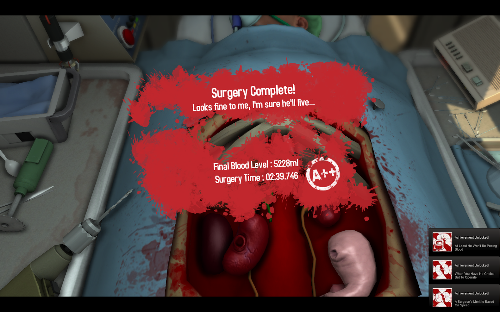 | Got a ton of achievements on my first Double Kidney Transplant in an Ambulance, including minimal blood loss and speed. Funny thing is I never managed to get these for the regular operation. |